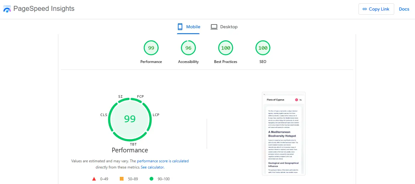 Flora of Cyprus Technical SEO WordPress